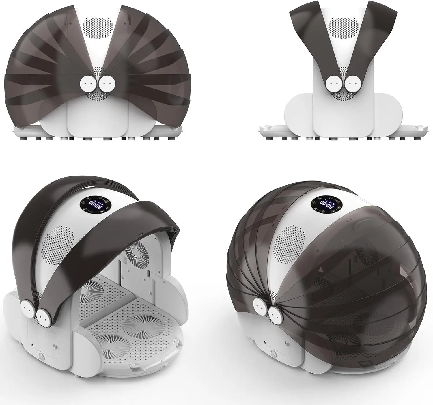 Мощная функция: восемь вентиляторов обеспечивают 360-градусный поток воздуха, быстро и равномерно обдувая каждый сантиметр тела вашего питомца, обеспечивая тщательную сушку даже труднодоступных участков, таких как живот и лапы. Этот продуманный механизм не только повышает эффективность сушки, но и предотвращает раздражение кожи, вызванное влагой.